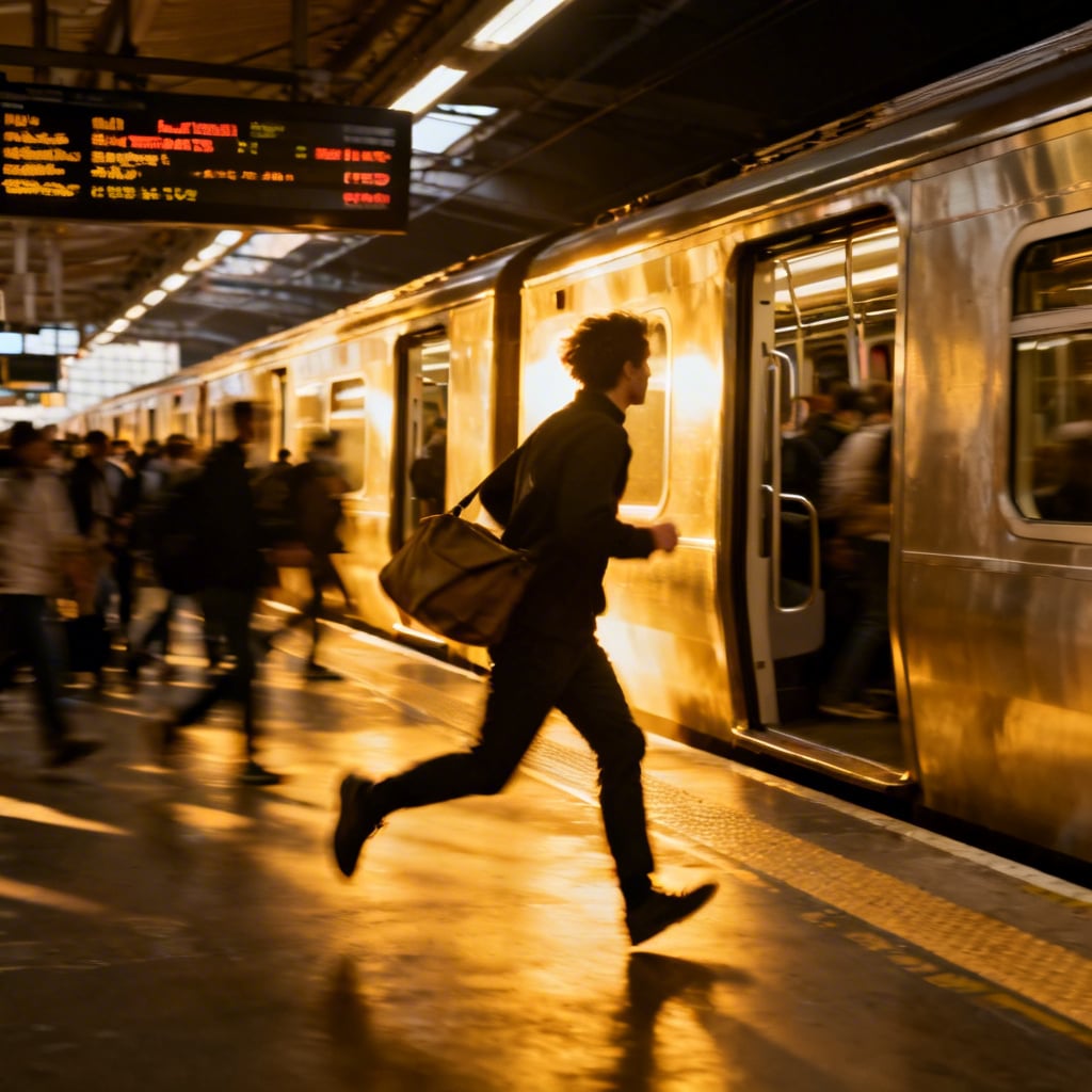 快 is a very common adjective meaning fast or quick. It can describe speed, like walking fast, or time, meaning something will happen soon, as in the train example.