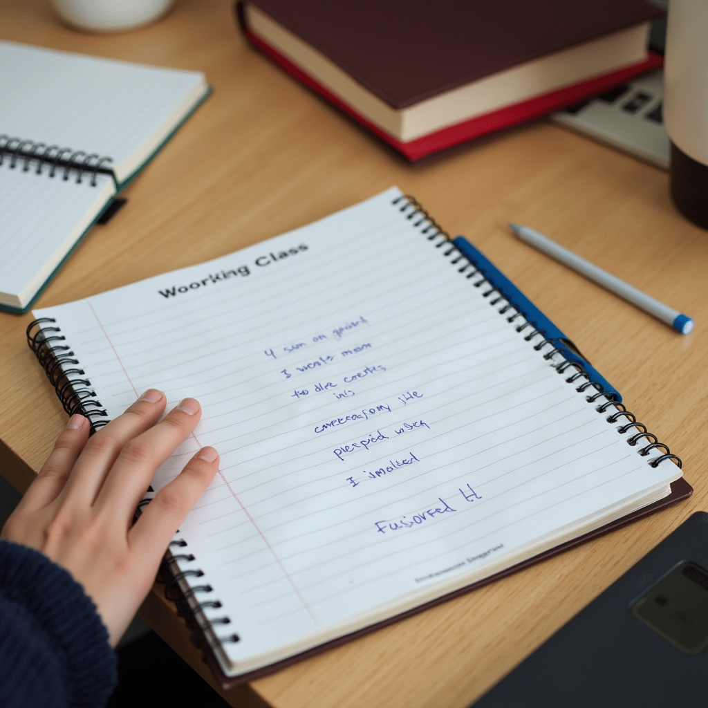 In French, un cahier specifically refers to a bound notebook for writing, often used by students. It's different from un carnet, which is usually a smaller notebook or a booklet.