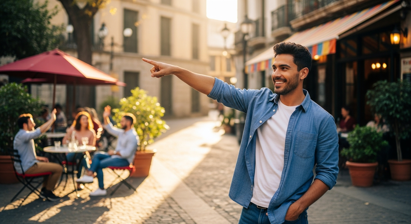 Use 'là' to point out a specific location that is visible or nearby, similar to how you'd use 'there' in English when indicating a place.