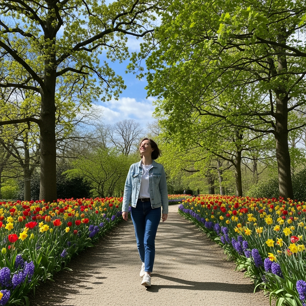 Je marche dans le parc.