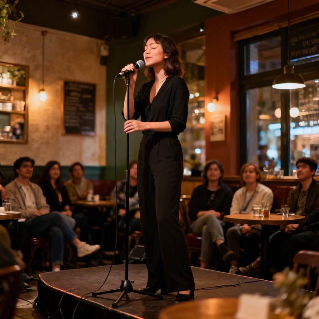 She sings with a beautiful voice.