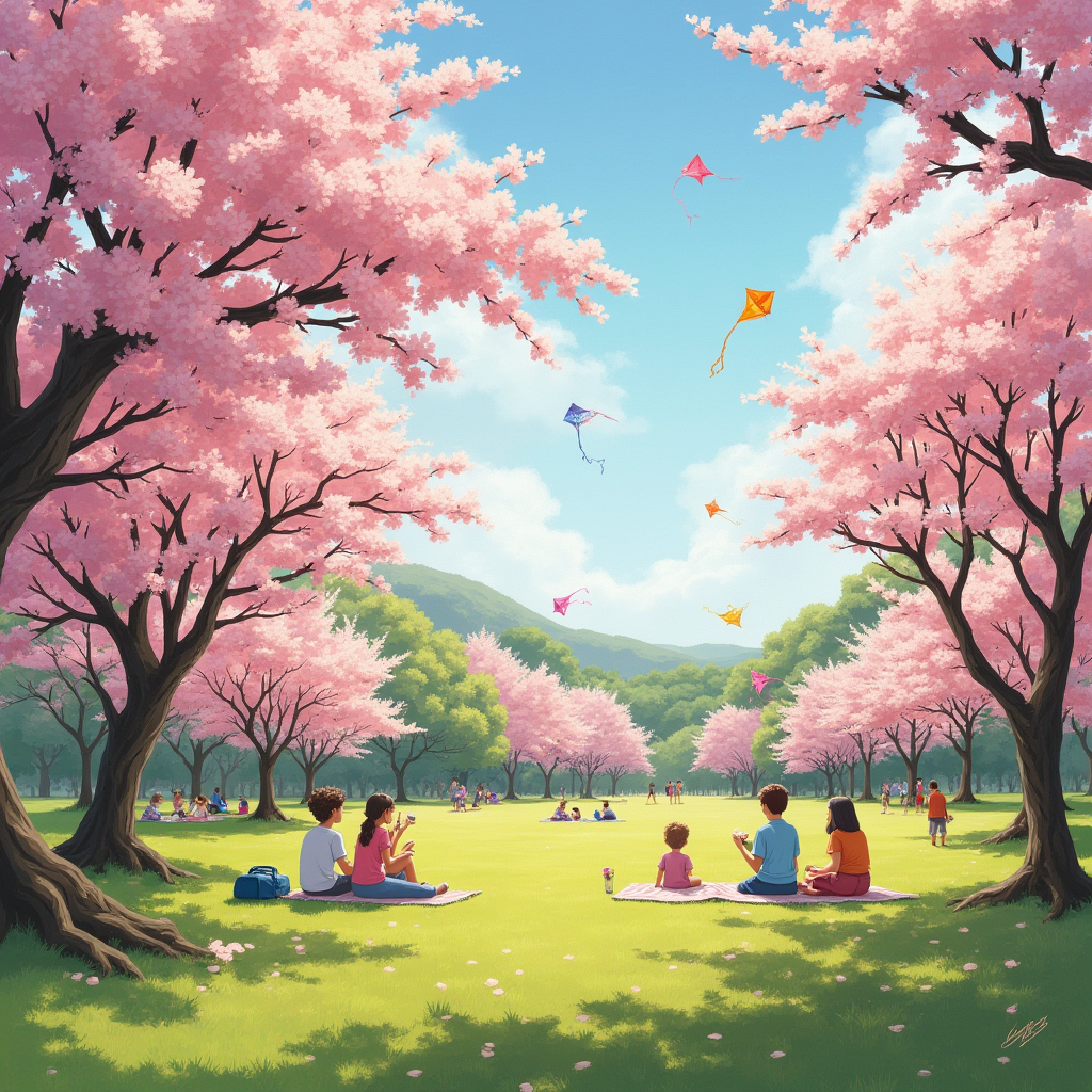 春 (はる) means 'spring' and is associated with new beginnings and blooming flowers. In Japan, spring is a time for festivals and enjoying nature, making it a joyful season.